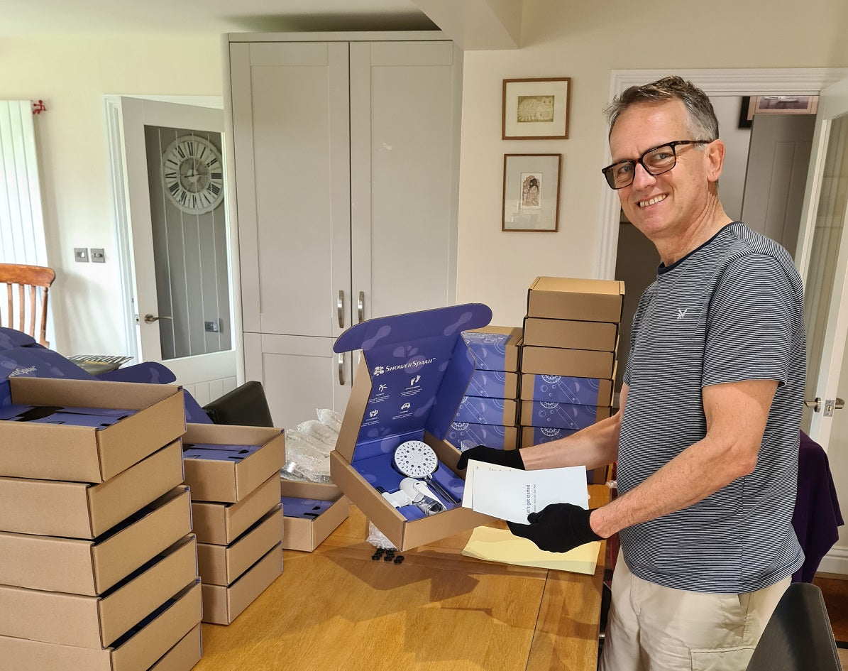 The first ShowerSpaahs were packed up on my kitchen table — just me, a pile of boxes, and the belief that this could make a real difference.